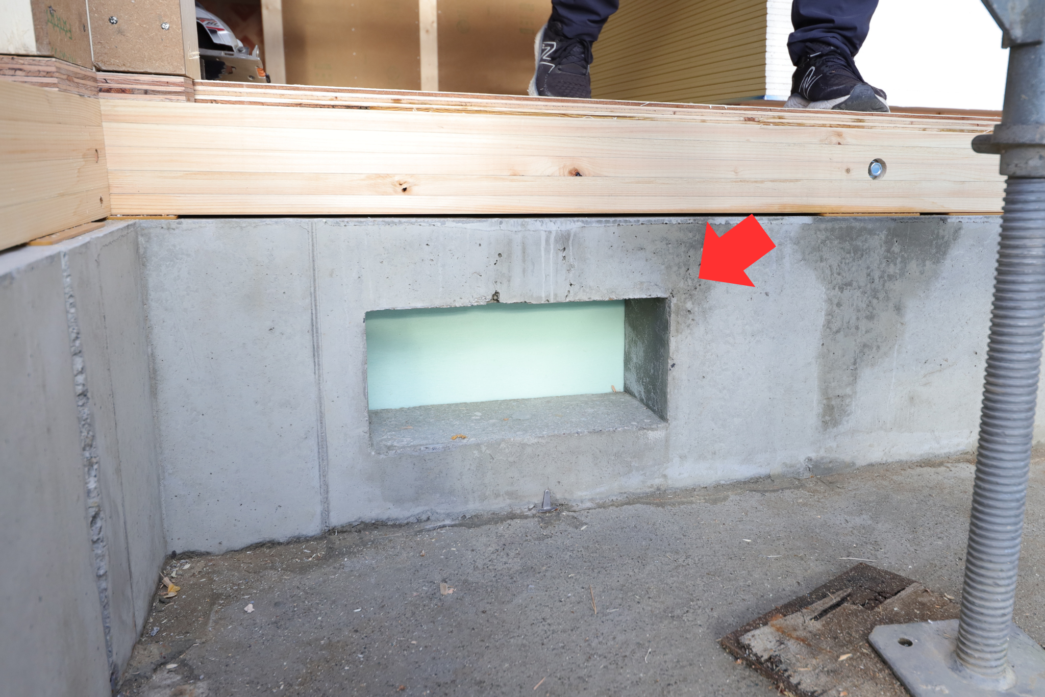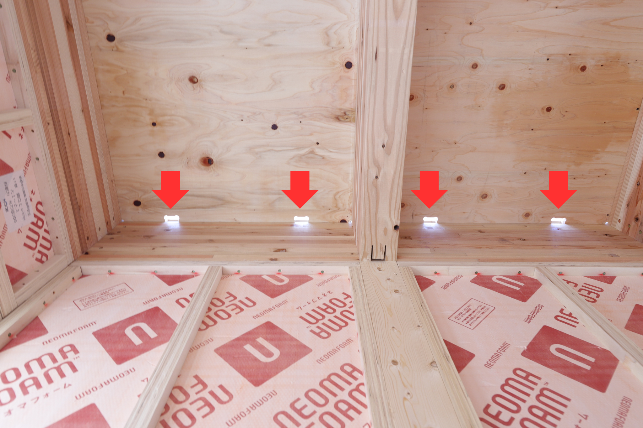 上棟したばかりの今だからこそ見ていただきたいのが、WB工法独自の「空気孔」です。