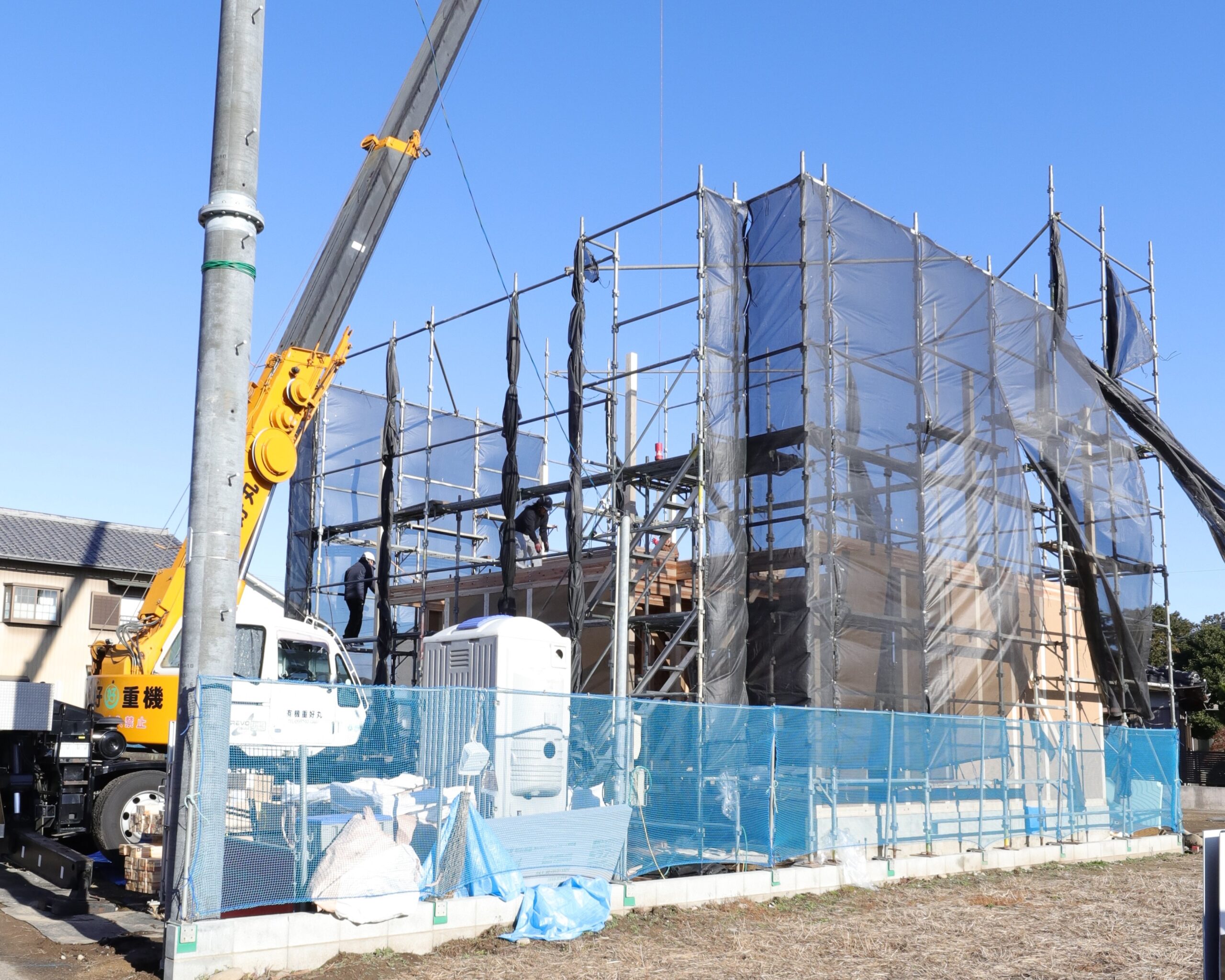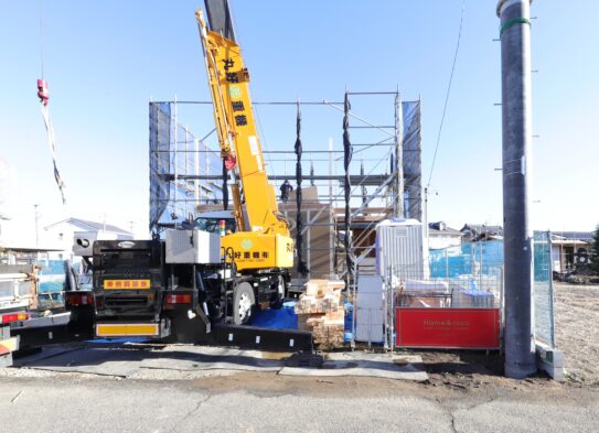 職人さんの手によって柱や梁が組み上がっていく様子は、いつ見ても家づくりの力強さを感じる特別な瞬間です。