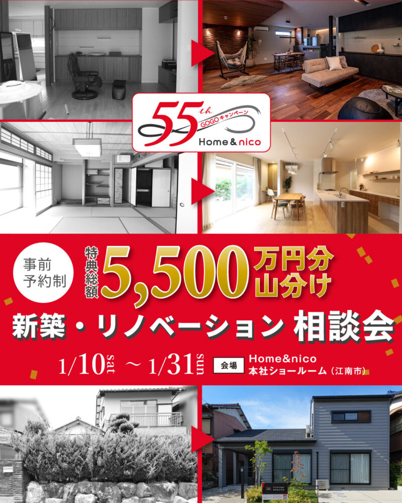 【ご成約特典】総額5500万円分山分け 新築・リノベーション相談会 1/10 – 1/31