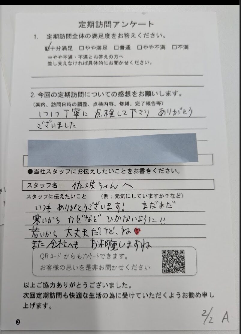 江南市前飛保町におすまいのA様邸 22年定期点検にうかがいました