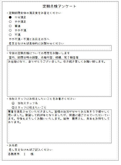 外部の点検ではバルコニー腰壁のシーリング1本に切れが発生しており、築20年頃に外部全体のメンテナンスリフォームを予定することになり、内部の点検では2階のサッシ1か所に若干の歪があり調整をいたしましたが、建物的には全く問題はありませんでした。