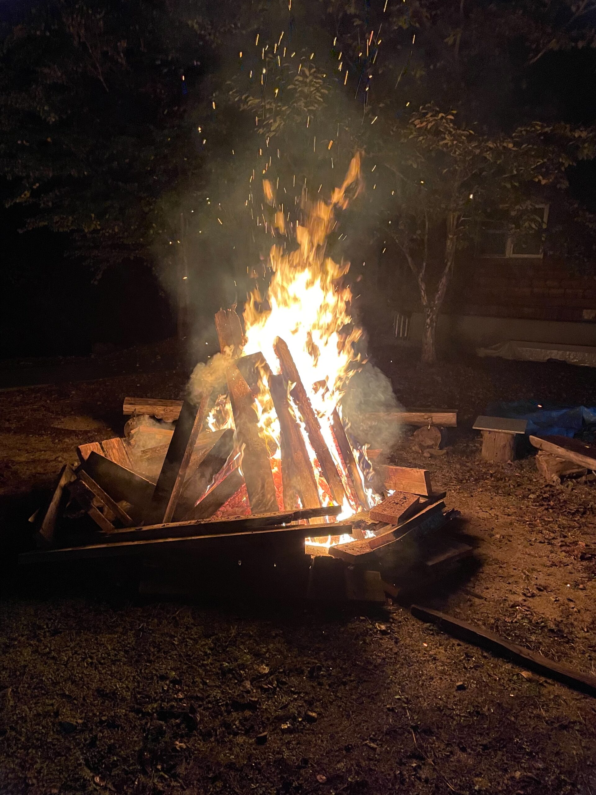 豪快すぎて、近づくと火の粉で服に穴が開きます。