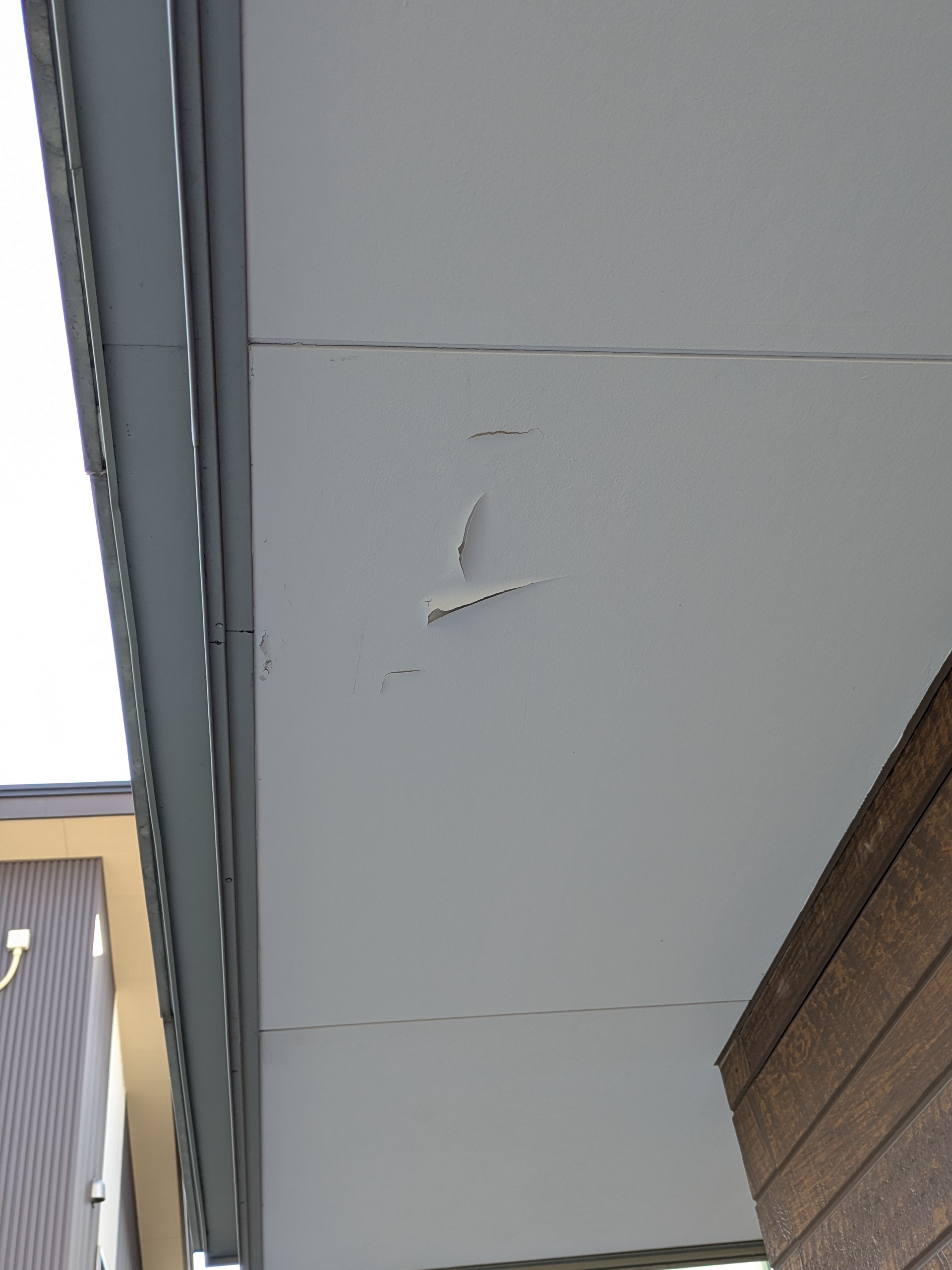 外部の点検では軒天の塗装のめくれが発生したため、修繕方法を検討報告することとなり