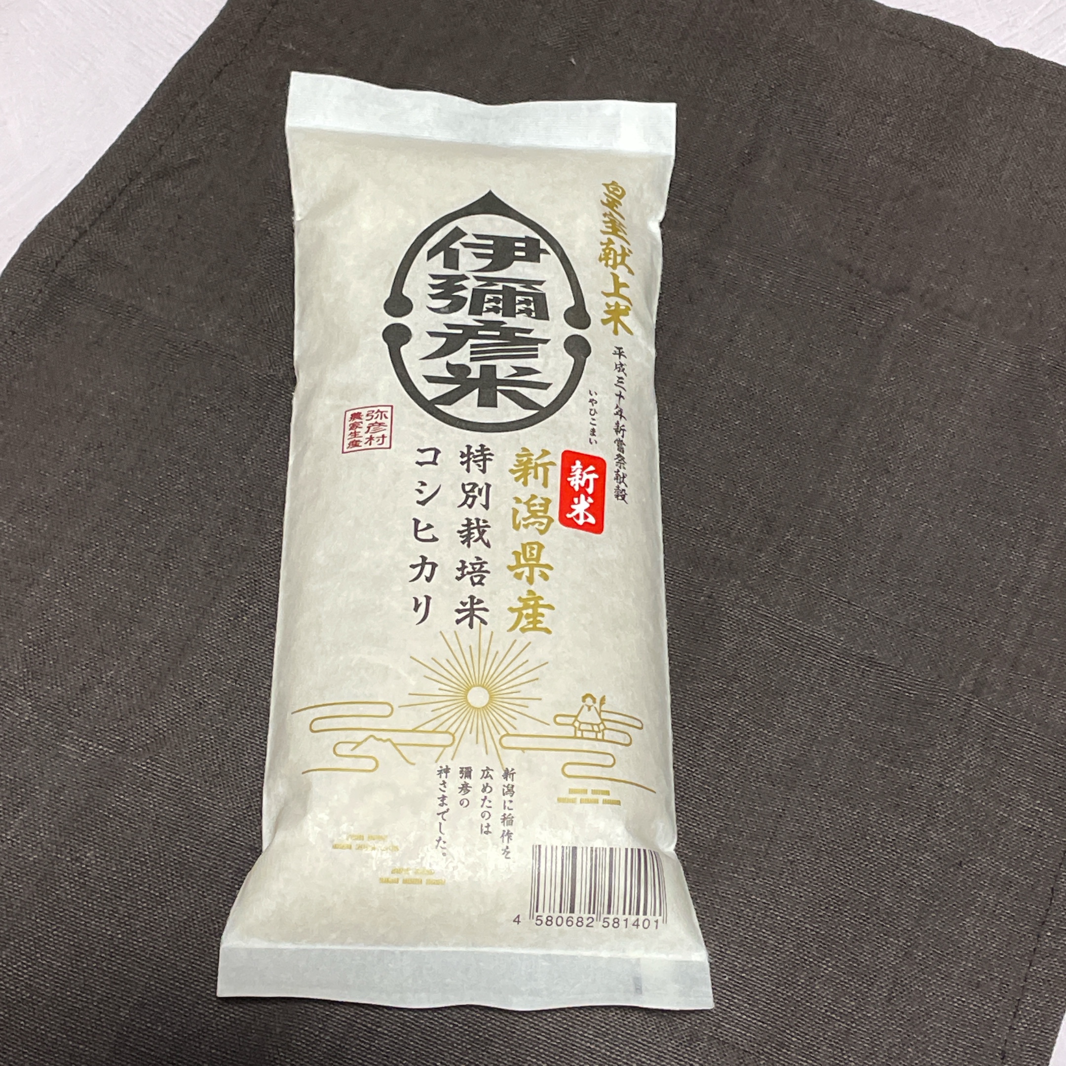 伊彌彦米(いやひこまい)という、新潟県弥彦村で栽培されているコシヒカリなんだそうです。