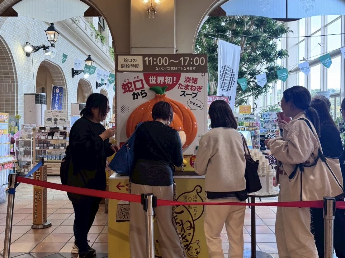 淡路島のハイウェイオアシスには、蛇口からオニオンスープがあり、みんなでいただきました!
