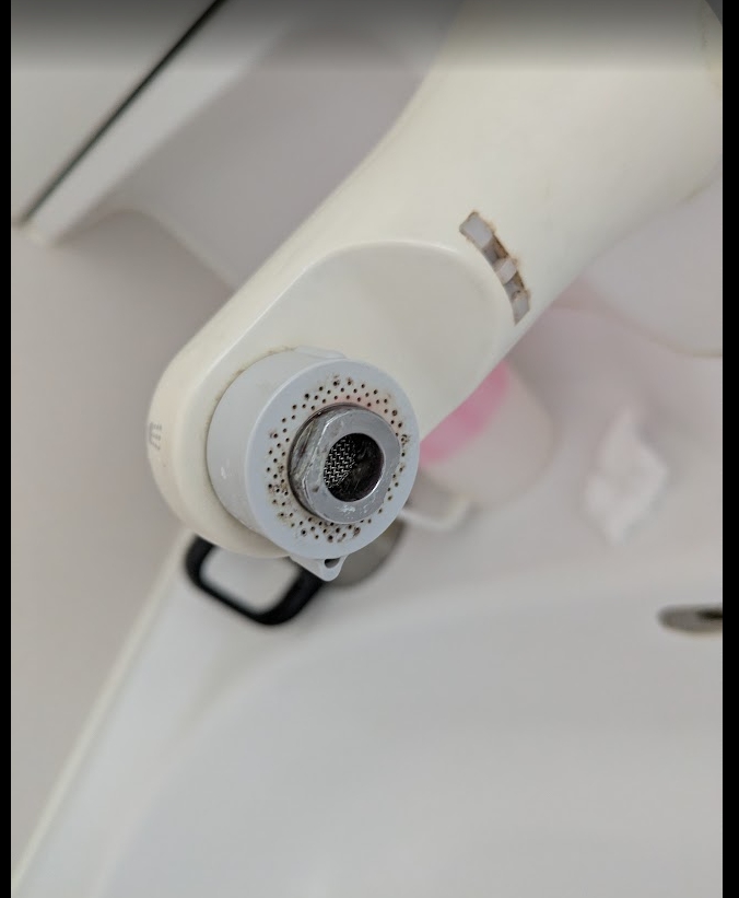 内部ではサッシの若干の傾き2か所を調整し、洗面化粧台とキッチン水栓の蛇口の汚れがあったため、ご家族様の健康のためにクリーニングを提案しました。