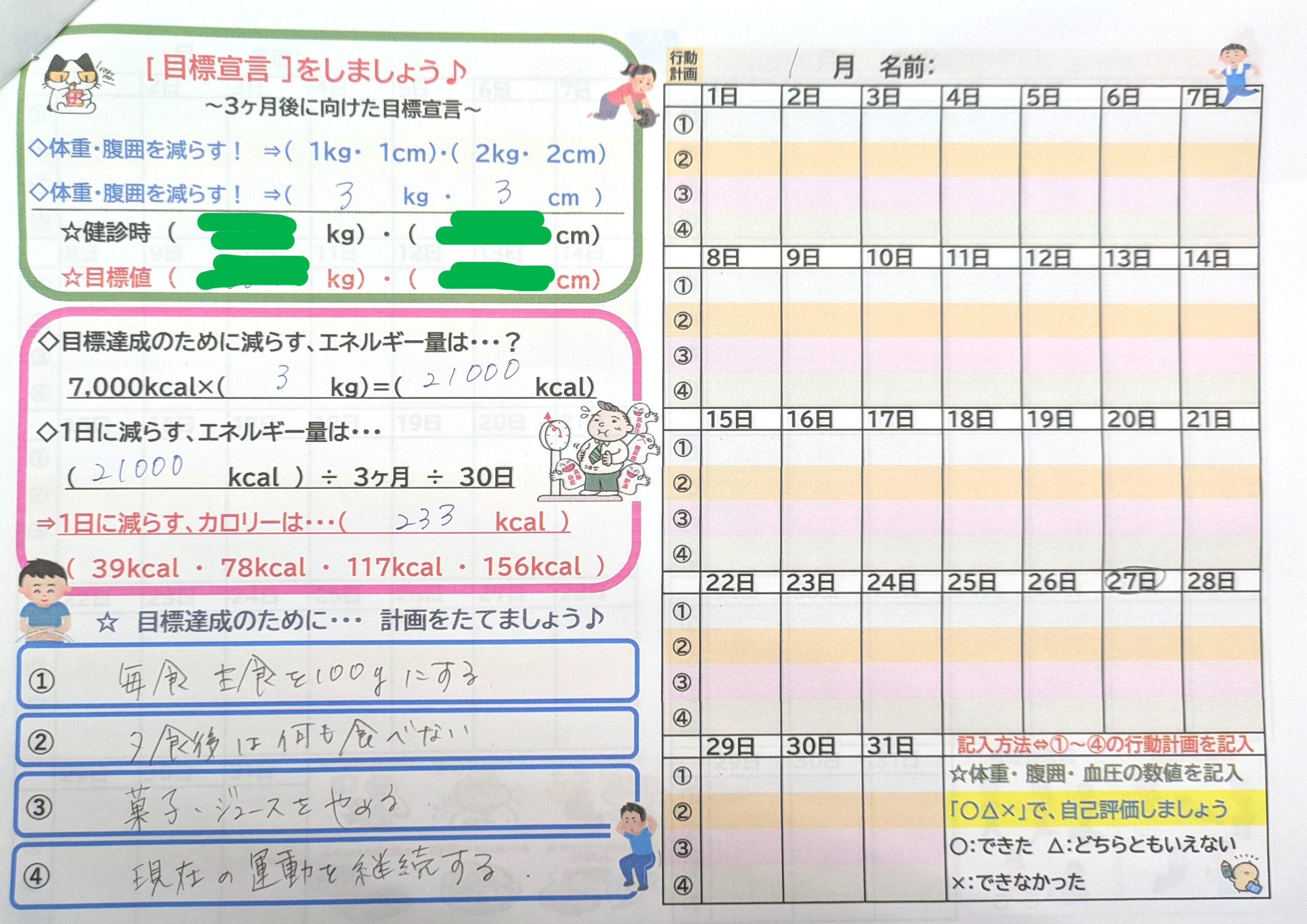 3ヶ月で目標マイナス3キロ!