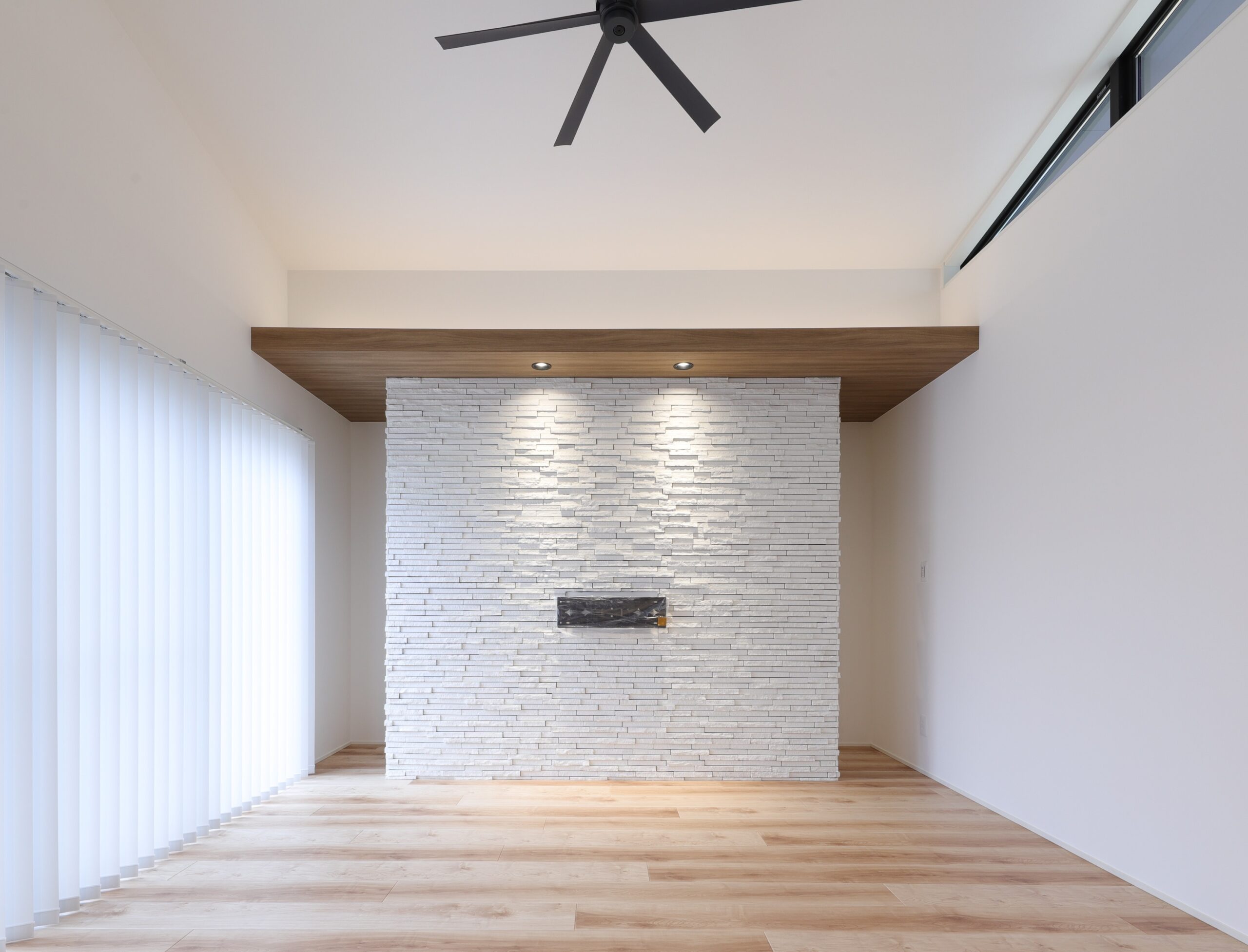 さらにダウンライトを設置しタイルを照らすことで、リビングの見せ場になるようにしています。