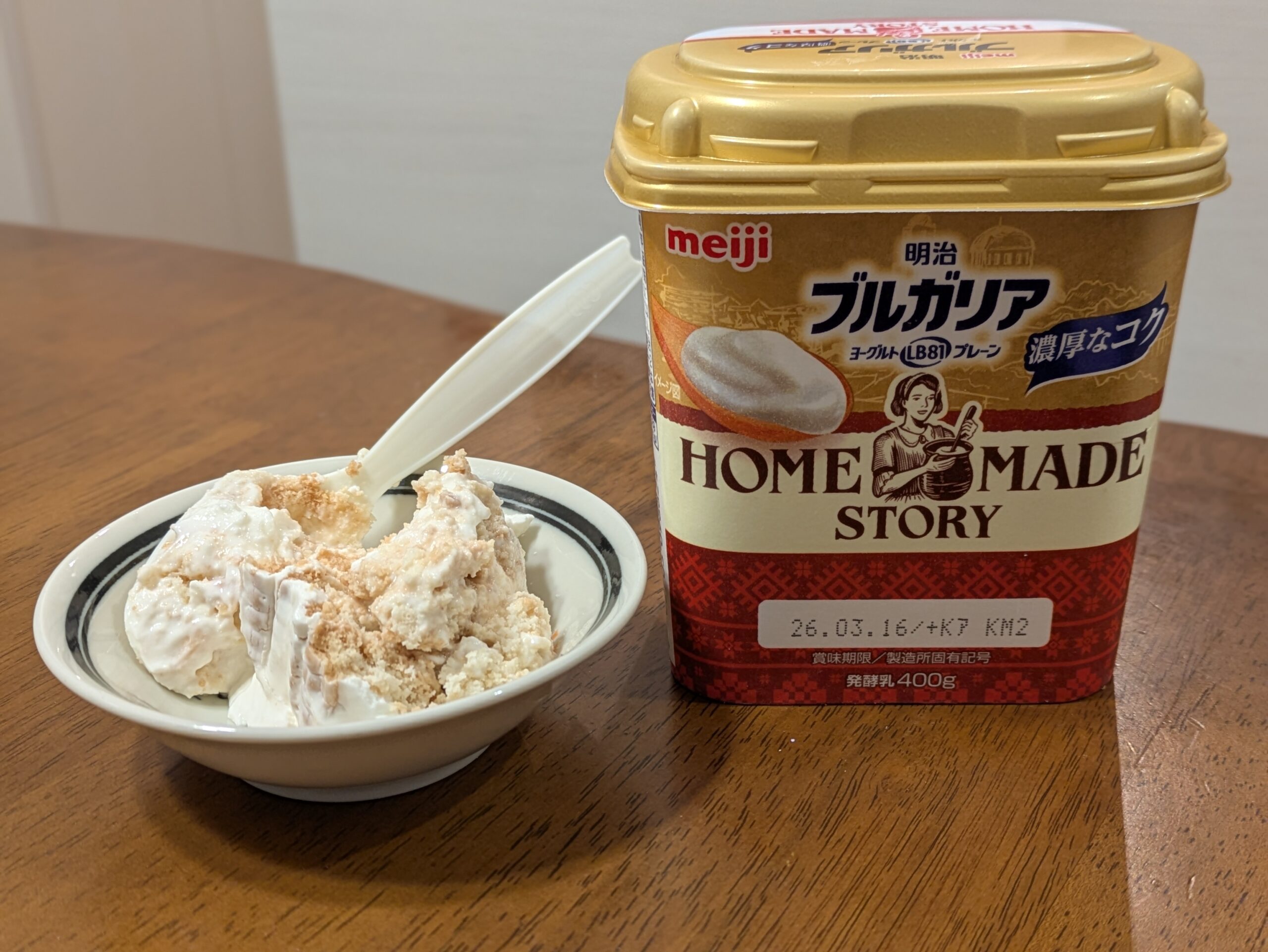 ヨーグルトとビスケット別々で食べます(≧▽≦)