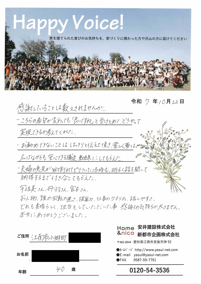 ・お勧めできないことははっきりと伝えて頂き楽しく夢は広げながらも安心できる構造、動線にしてもらえた